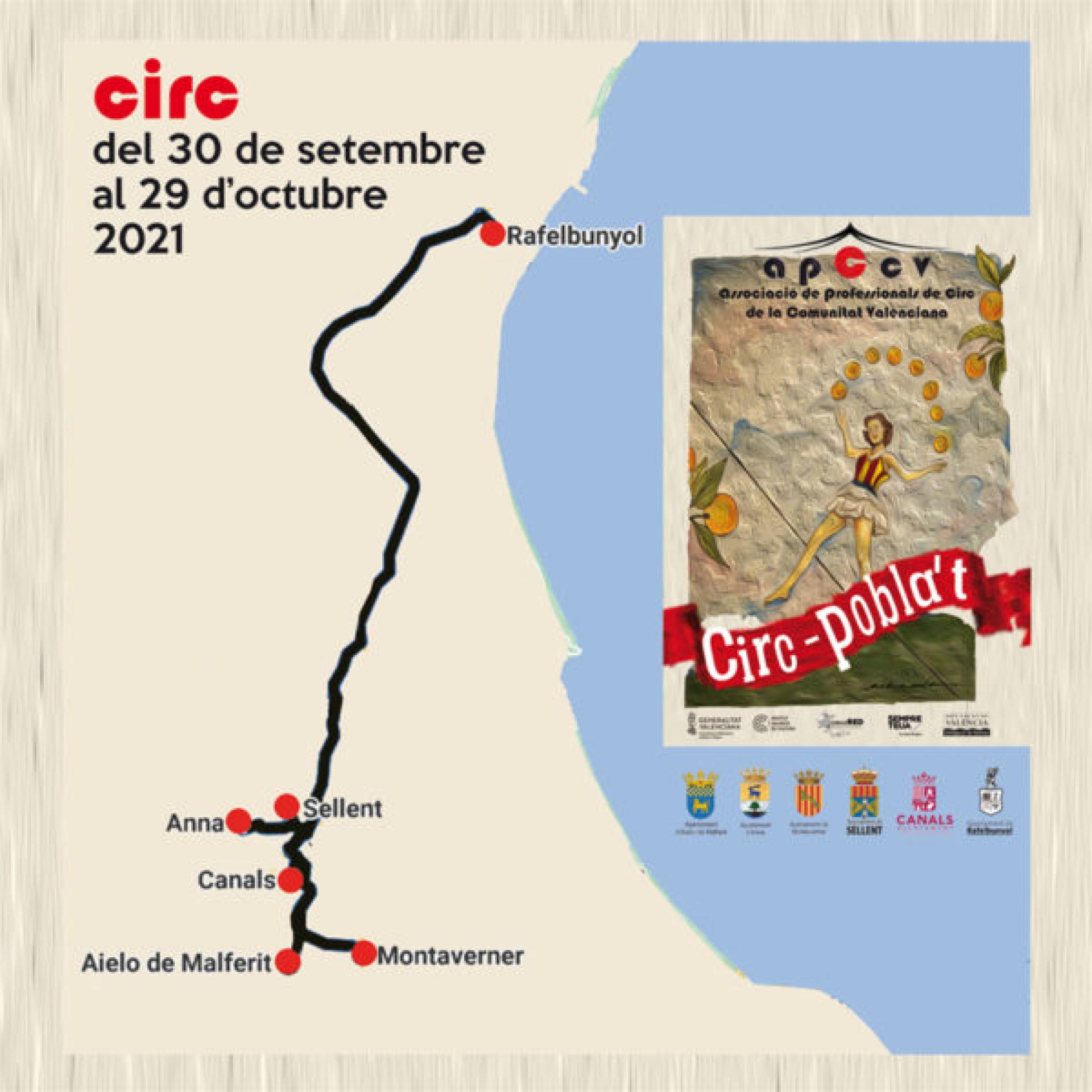 El circ pobla't forma part de la celebració dels 10 anys de l'ASSOCIACIÓ DE PROFESSIONALS DE CIRC DE LA COMUNITAT VALENCIANA, activitat subvencionada per la Diputació de València i amb el suport dels Ajuntaments i Regidories de Cultura de Canals, Sellent, Anna, Montaverner, Rafelbunyol i Aielo de Malferit.