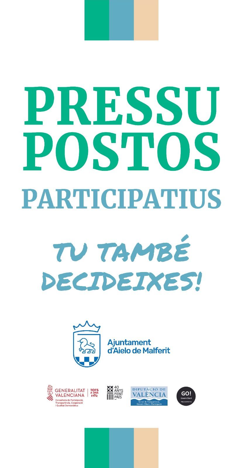 En esta edició dels Pressupostos Participatius, l’Ajuntament d’Aielo de Malferit ha estat subvencionat amb 6.656 euros per la Conselleria de Participació, Transparència i Qualitat Dermocràtica i la Diputació Provincial de València amb l’objectiu de promoure el procés d’enquesta ciutadana al temps que ha permés l’adequació de la plataforma web i ha fet el procés més accessible i simple.