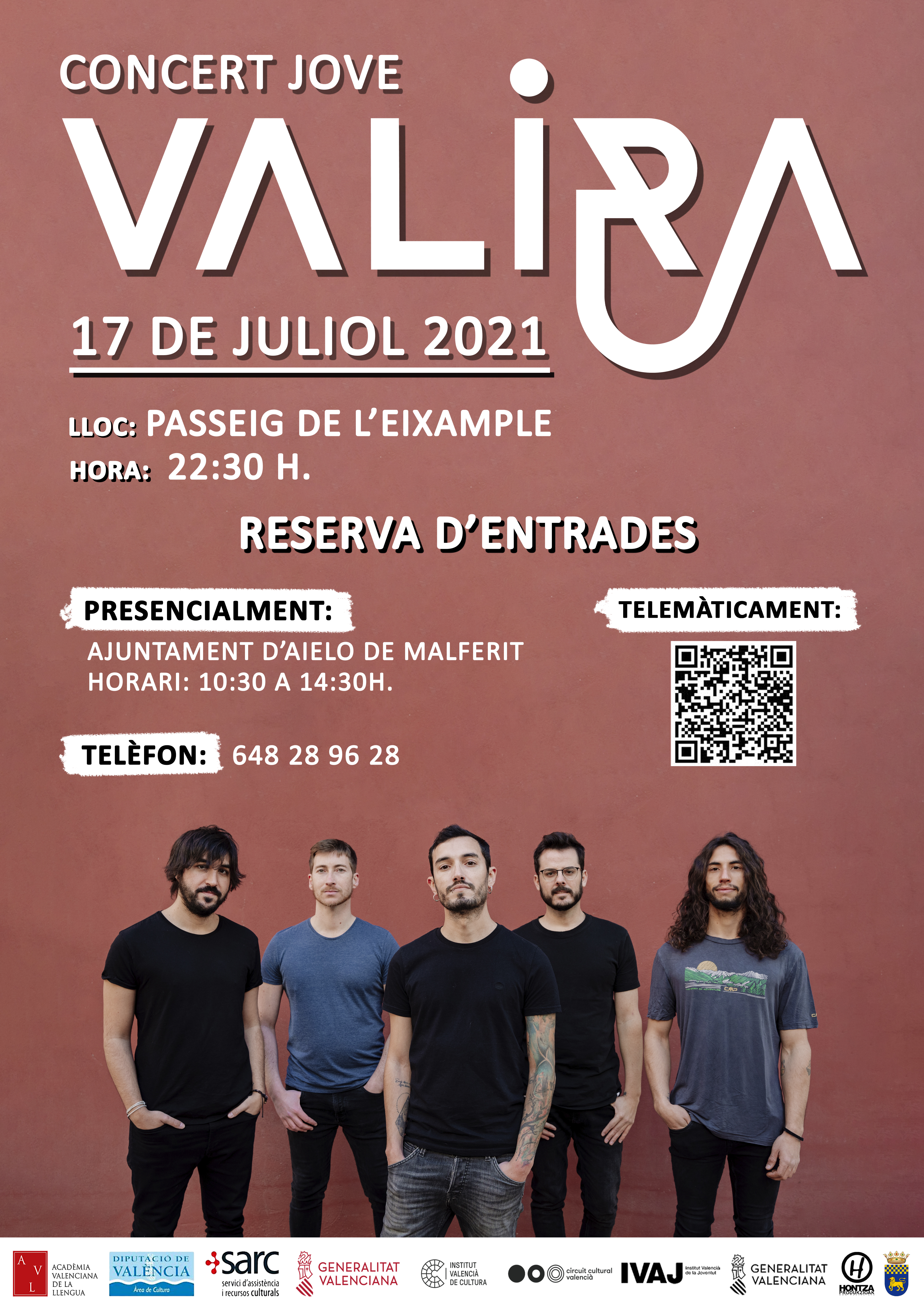 L'actuació de VALIRA programada per a aquest Dissabte 17 de Juliol, arran de les noves mesures i restriccions, AVANÇA l'hora del concert a les 22:30h, perquè així tots els assistents, membres del grup i tècnics puguen tornar a les seues respectives localitats sense cap mena de problema.
