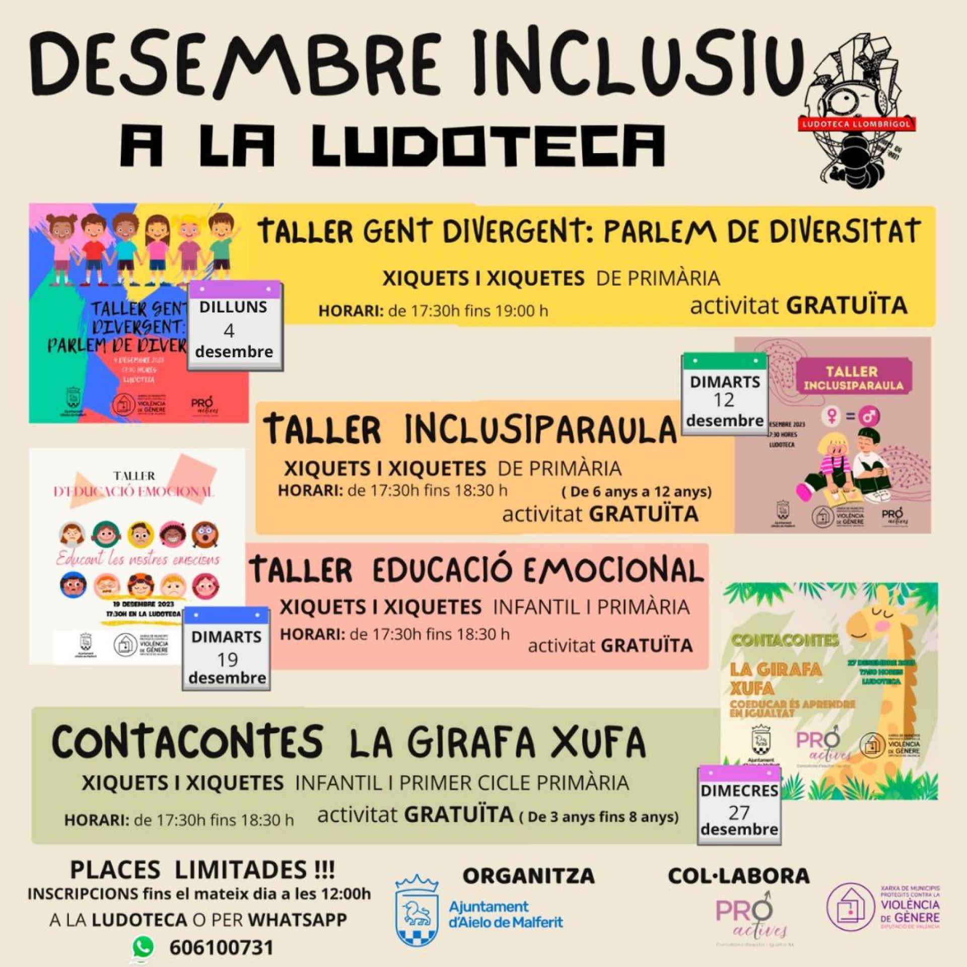 Desembre INCLUSIU a la LUDOTECA (Pròxima activitat dimarts 12 de desembre | 17:30 hores ) - Aielo de Malferit