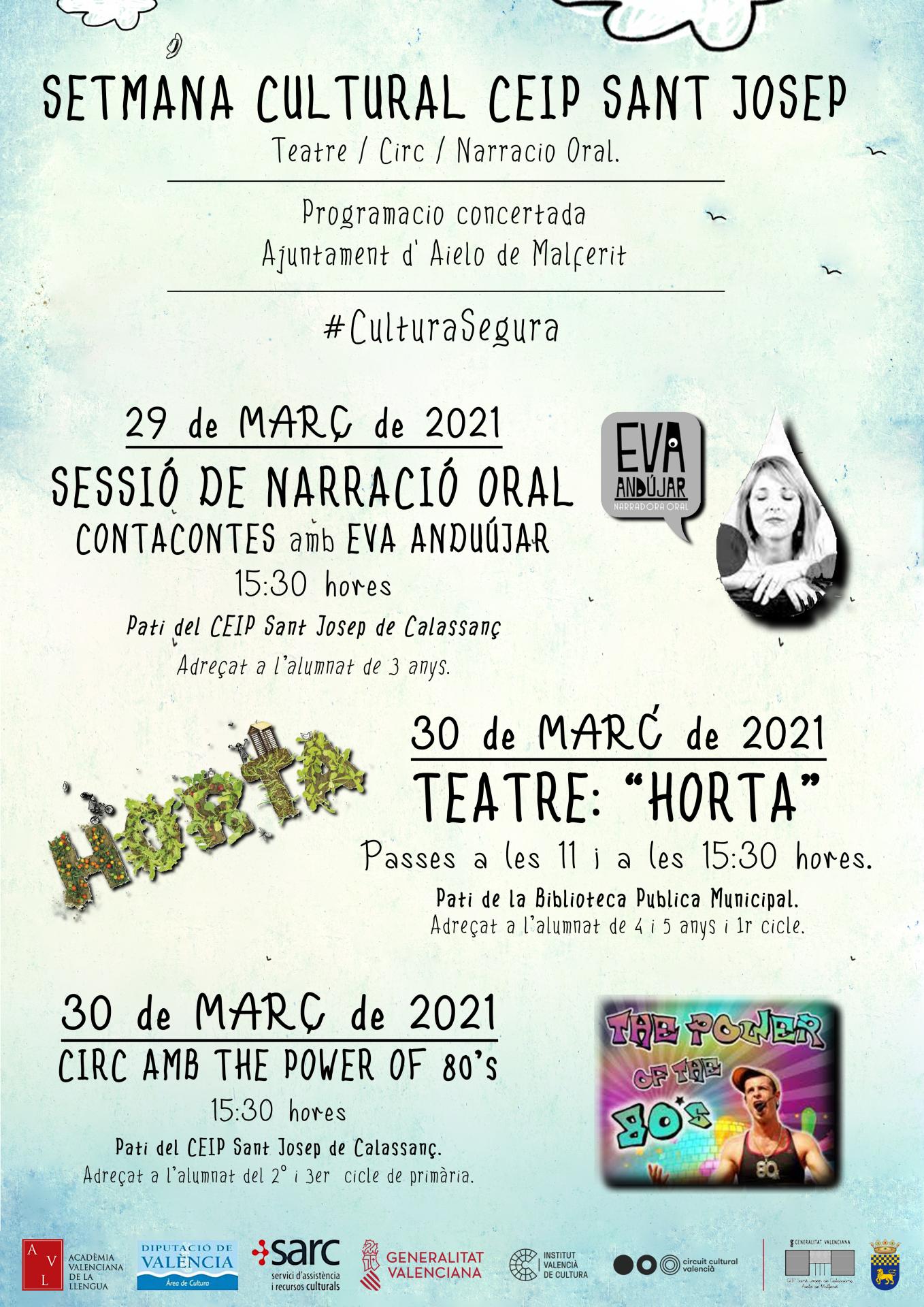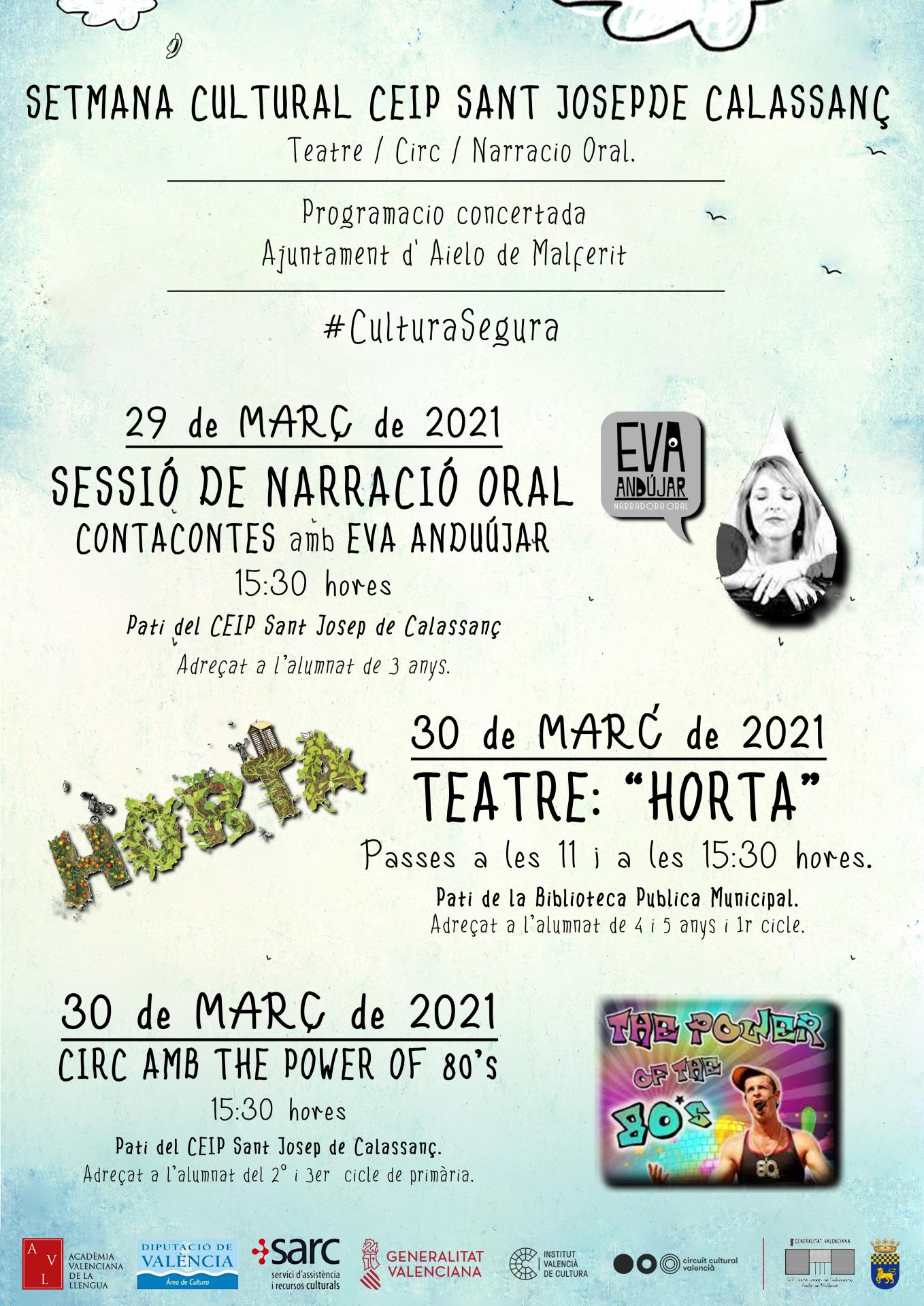 El CEIP Sant Josep de Calassanç celebrarà, del 29 al 31 de març, la Setmana Cultural del Centre, que com ja es tradició des de fa uns anys, es desenvolupa els dies abans de les vacances de Pasqua.