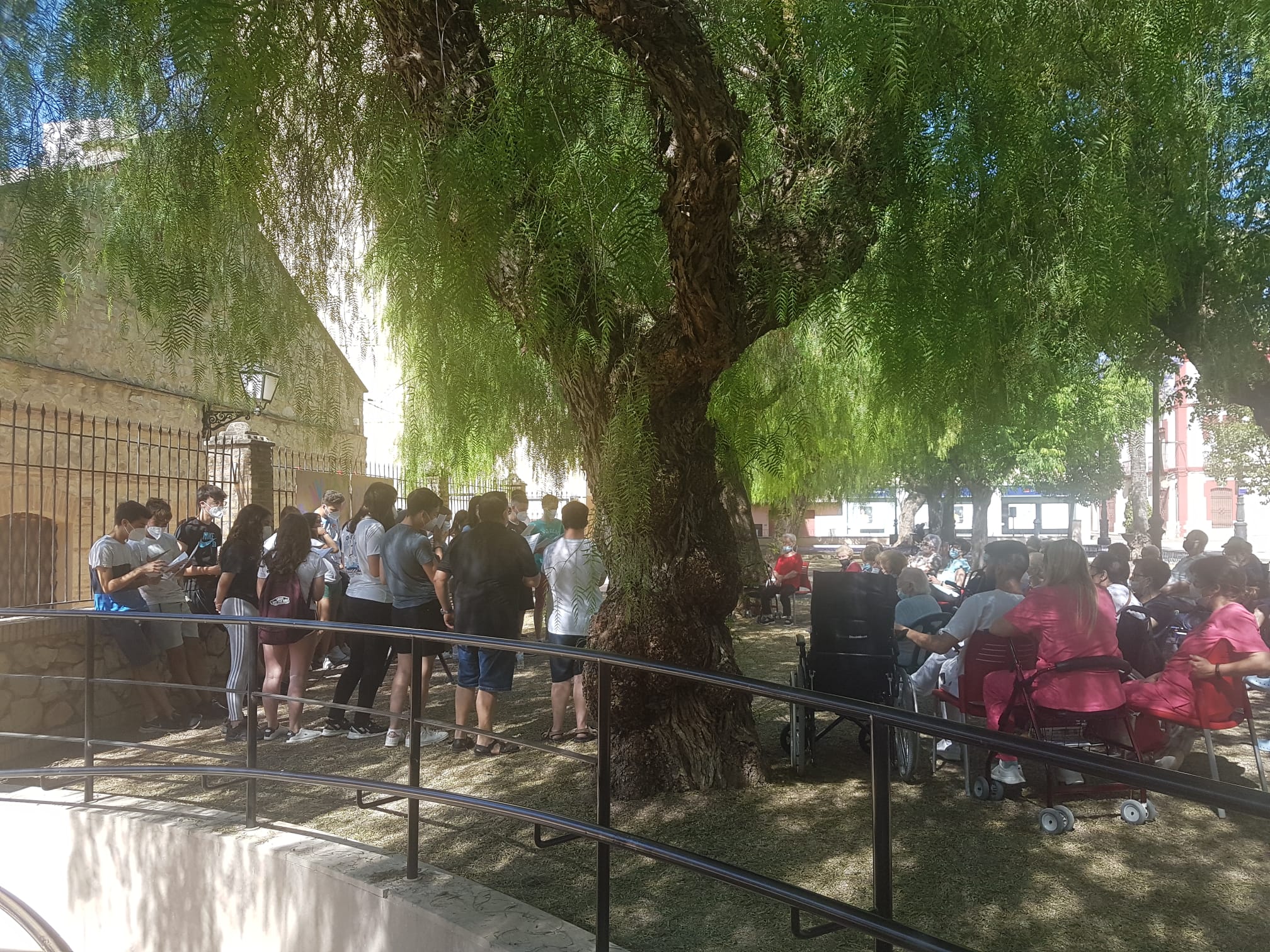 El dimarts 7 juny el Centre de dia ha rebut la visita dels alumnes del Institut d'Educació Secundària Porçons d'Aielo, de l'assignatura de música,acompanyats pel seu professor Héctor Mas Boluda, i han cantat tot un repertori de cançons en valencià. Ésta,junt a l'activitat del dilluns dia 13 de juny,dia que els i les usuaris i usuaries del centre visitaran els alumnes del Mòdul que s'està impartint a l'IES Porçons d'Atenció a persones en situació de Dependència, formen part del programa d'activitats del centre.