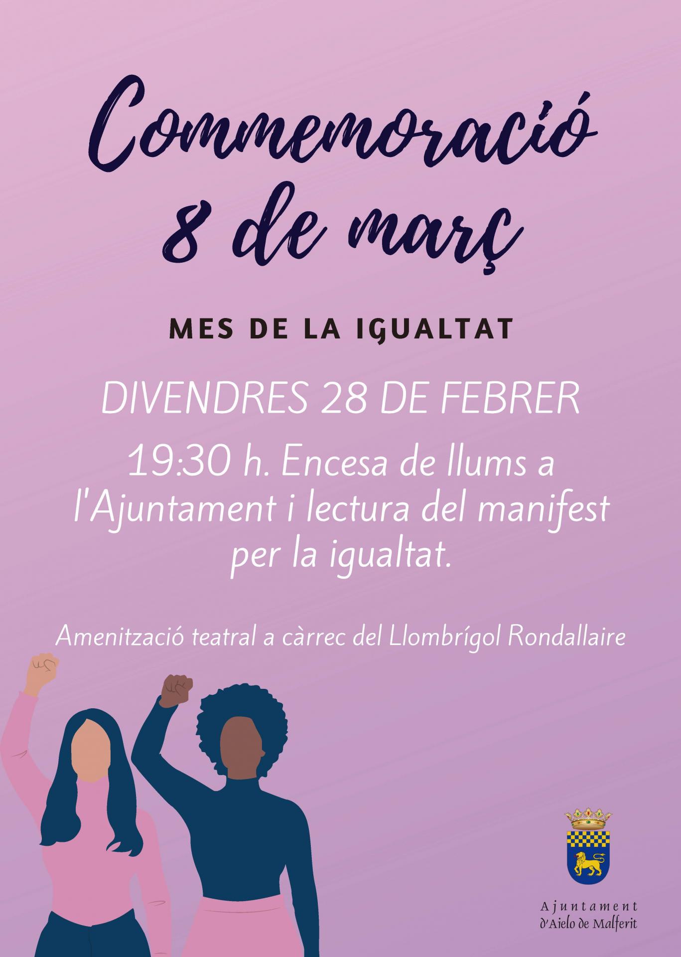Encesa de llums a l'Ajuntament i lectura del manifest per la igualtat (Commemoració 8 de març, mes de la igualtat) - Aielo de Malferit