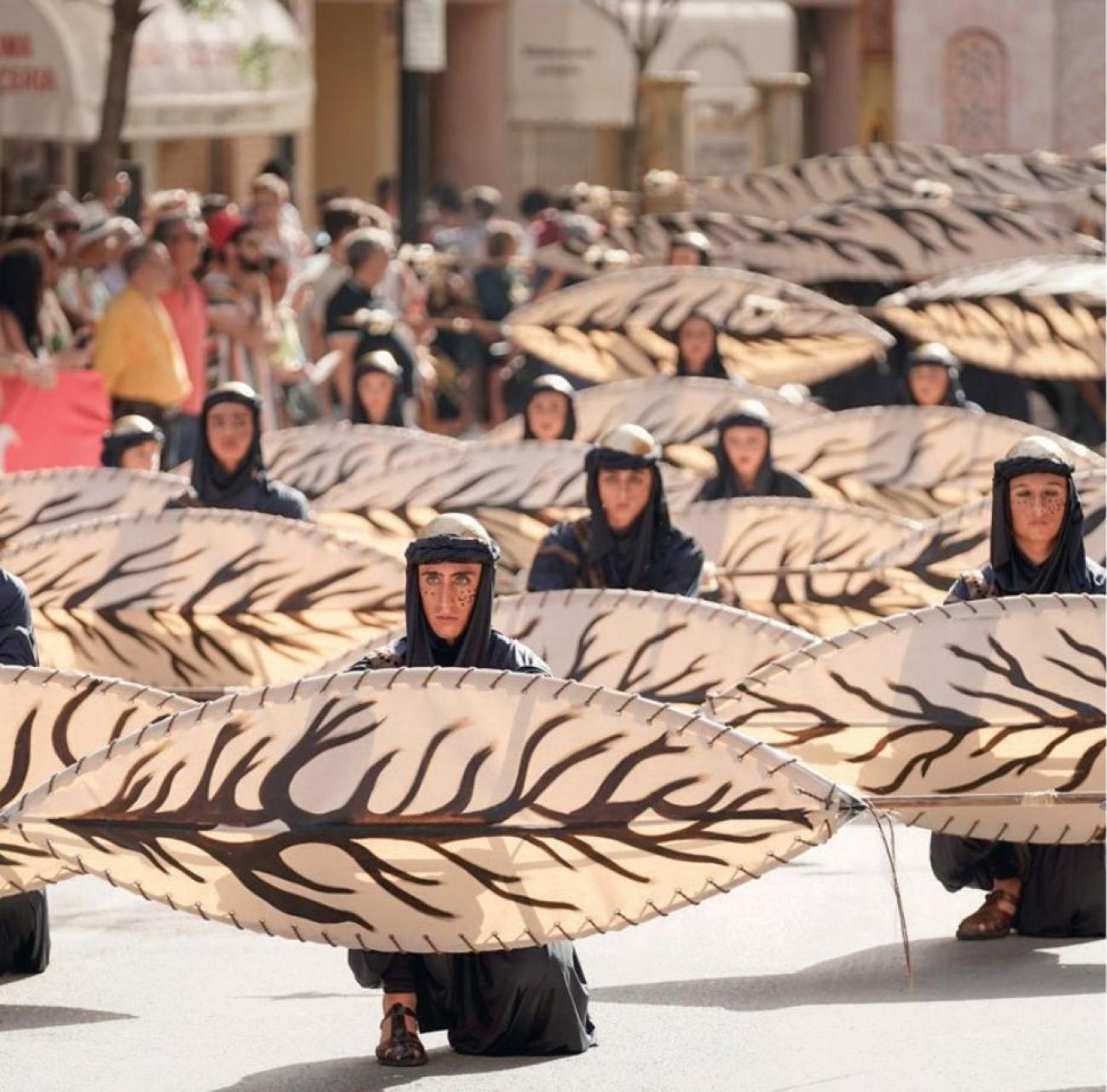 És l’acte que més esforços requereix per part de tots. Les comparses desfilen amb el seu vestit de gala, però, a més, en cadascuna d’elles també pren part una o més esquadres amb vestit singular, realitzat per a l’ocasió, la qual cosa li confereix un major colorit i exotisme, amb vestits que només van existir en la imaginació dels seus dissenyadors.