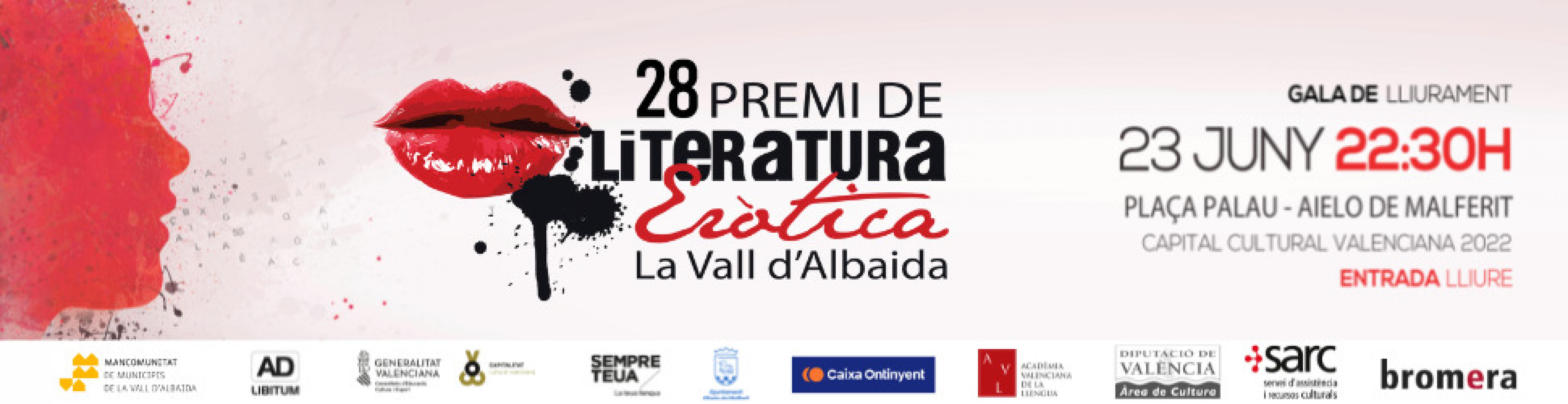 Dijous 16 de juny. La Mancomunitat de Municipis de la Vall d’Albaida, junt amb l’Ajuntament d’Aielo de Malferit, han organitzat la gala d’entrega del 28 Premi de Literatura Eròtica - la Vall d’Albaida per al dijous 23 de juny a les 22:30 h, a la Plaça Palau d’Aielo de Malferit.