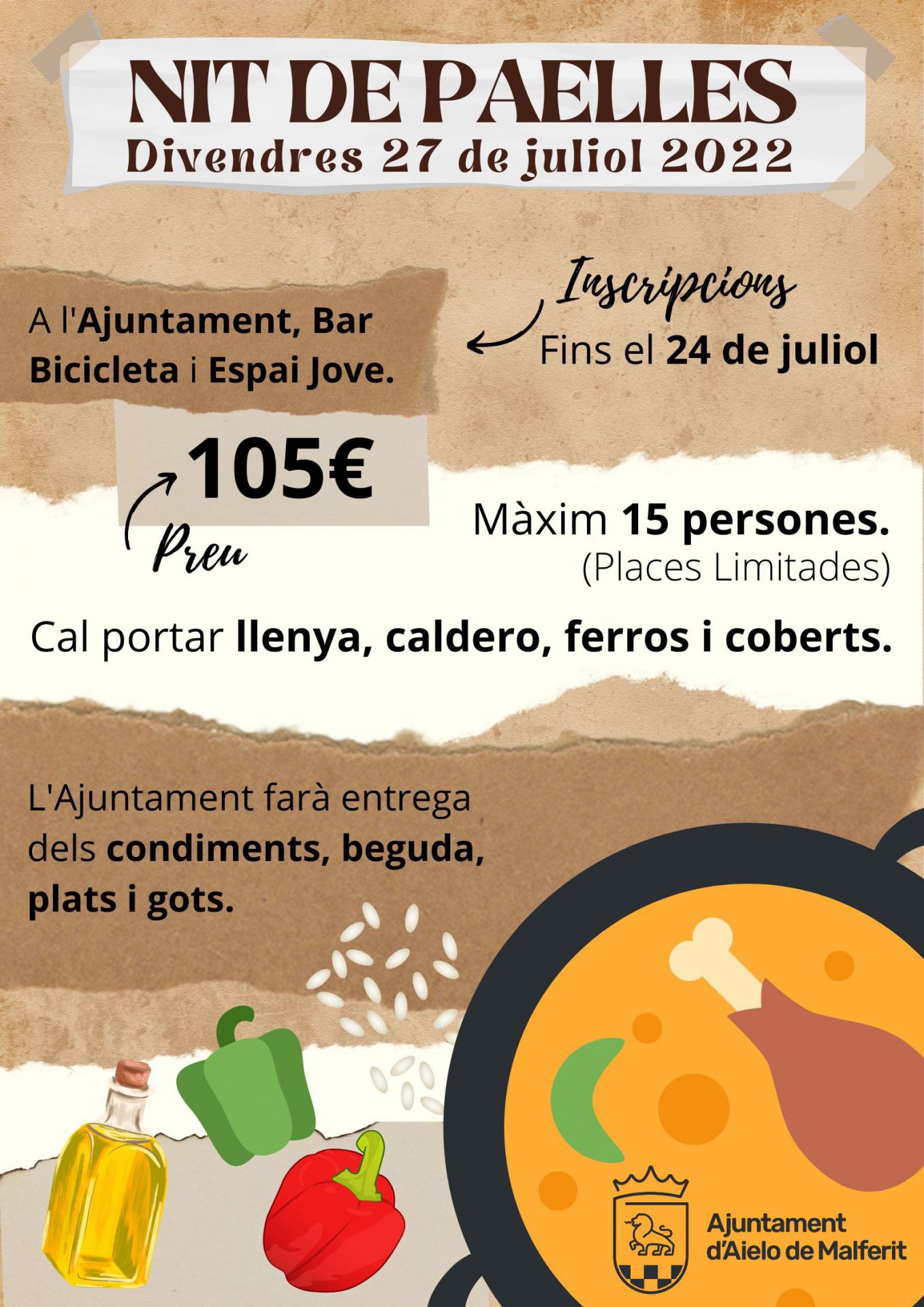 L'Ajuntament farà entrega dels condiments, beguda, plats i gots.