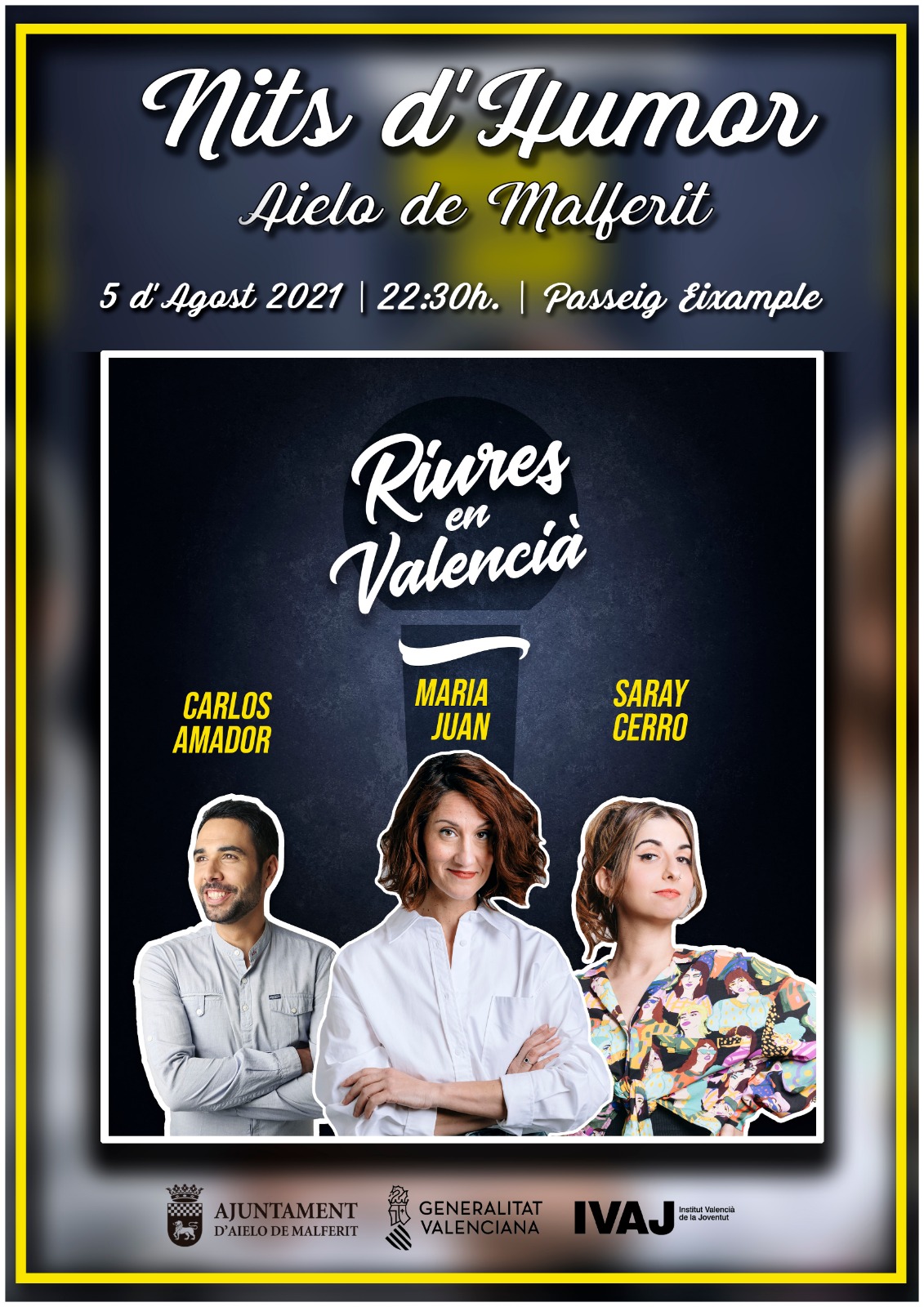 Riure en Valencià és un espectacle d'humor a càrrec de Maria Juan, Carlos Amador i Saray Cerro, tres humoristes valencianes que ens faran passar una nit entre risses