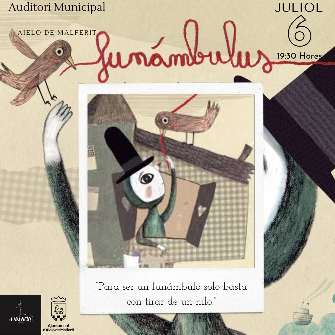 Essència Ballet presenta “Funámbulus”. Totes i tots tenim un somni, sols es tracta de construir espais on poder viure’l. I tu, ens acompanyes en aquest somni? T’esperem el 6 de juliol a l’Auditori Municipal a les 19:30 hores.