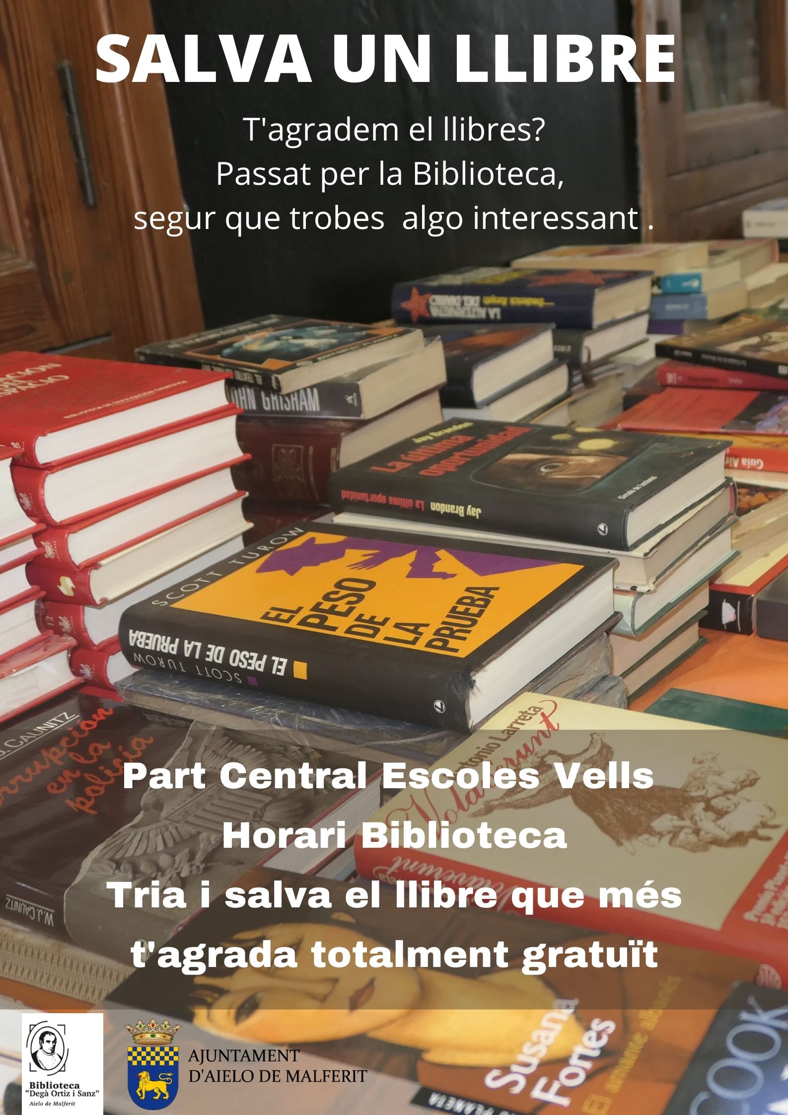 Per falta d’espai físic als dipòsits de la biblioteca i la gran quantitat d’exemplars duplicats que durant anys generen les donacions, així com materials bibliogràfics i audiovisuals desfasats o sense interés per als usuaris i usuàries de la biblioteca, posem a disposició del públic, a la sala de la part central de les Escoles Velles, aquest material bibliogràfic. Podeu triar, agafar-los, i salvar llibres, revistes o vídeos, totalment gratuïts, donant-los una altra oportunitat!