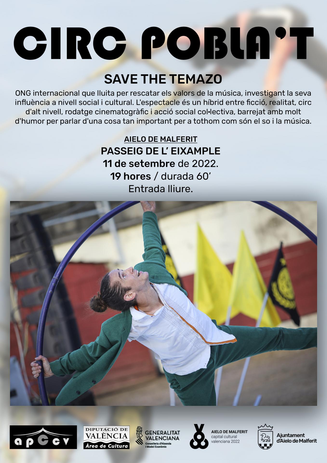 SAVE THE TEMAZO és una ONG internacional que lluita per rescatar els valors de la música, investigant la seva influència a nivell social i cultural. L'espectacle és un híbrid entre ficció, realitat, circ d'alt nivell, rodatge cinematogràfic i acció social col·lectiva, barrejat amb molt d'humor per parlar d'una cosa tan important per a tothom com són el so i la música.