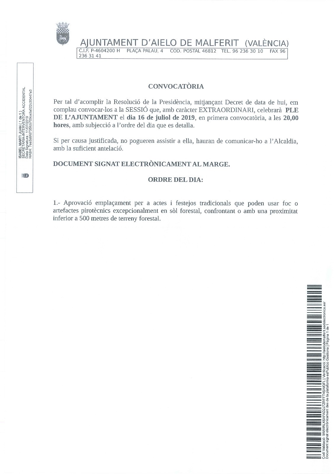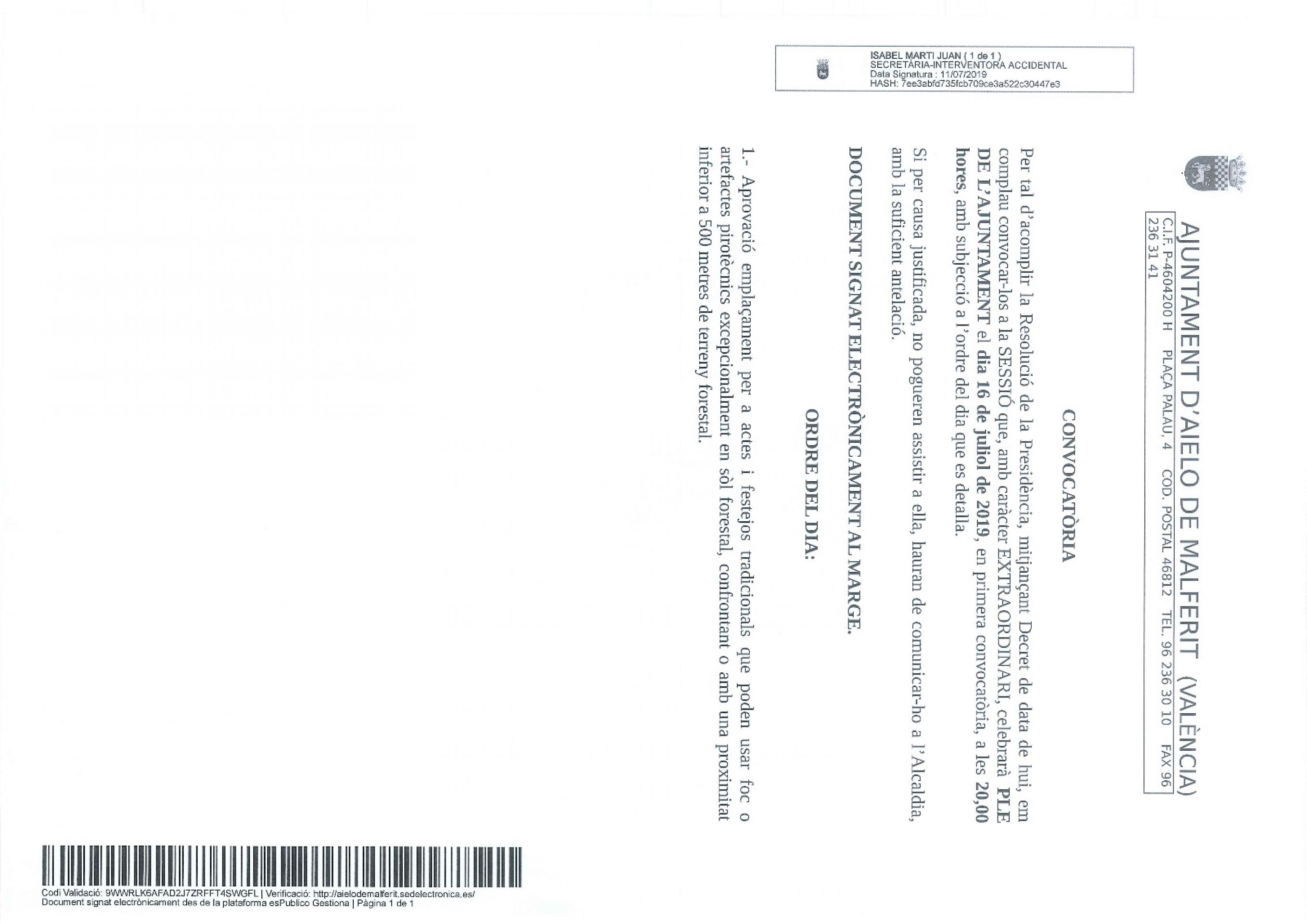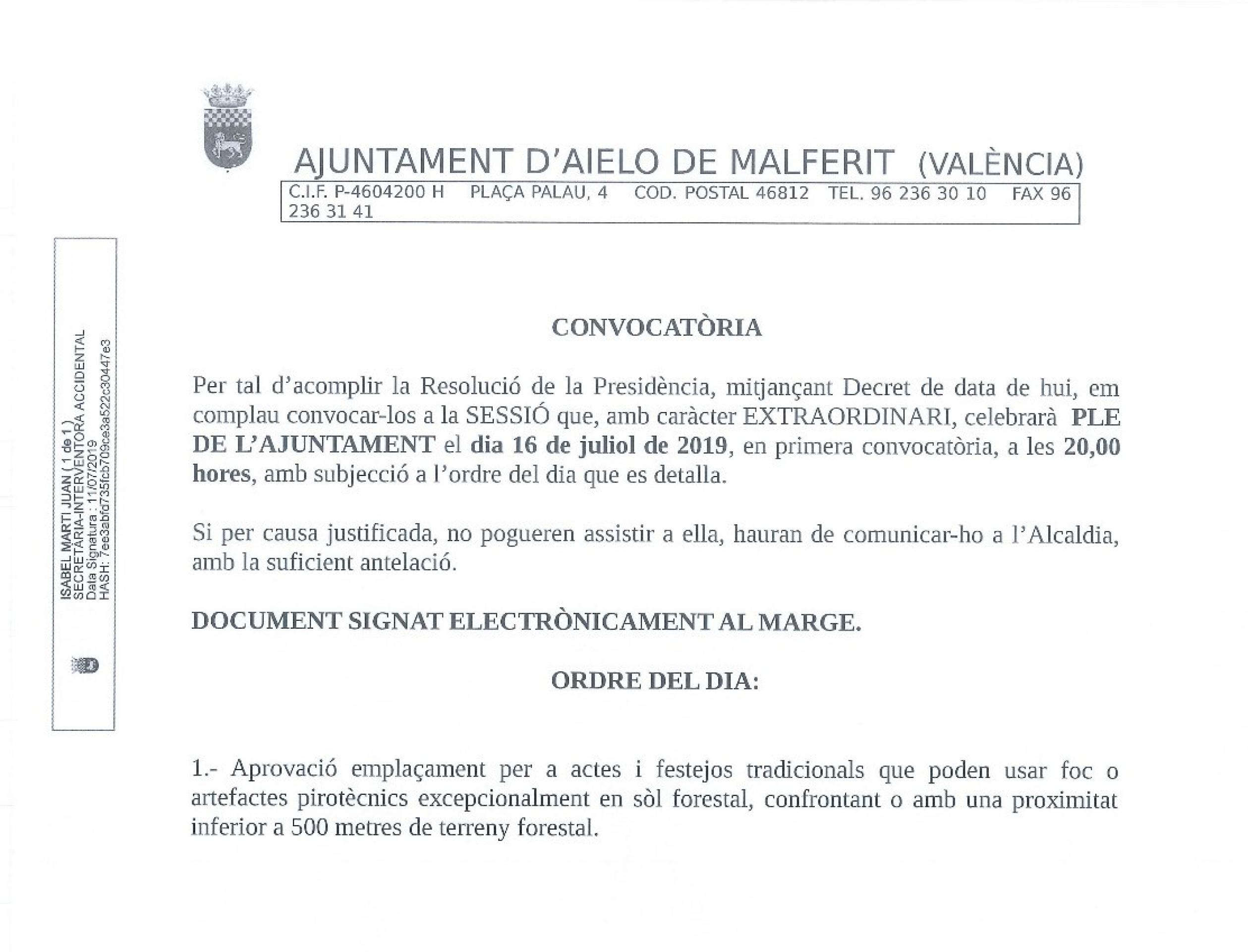 Demà dimarts dia 16 de juliol a les 20 hores, hi tindrà lloc una Sessió Extraordinària del Ple, al Saló de Plens Municipal.