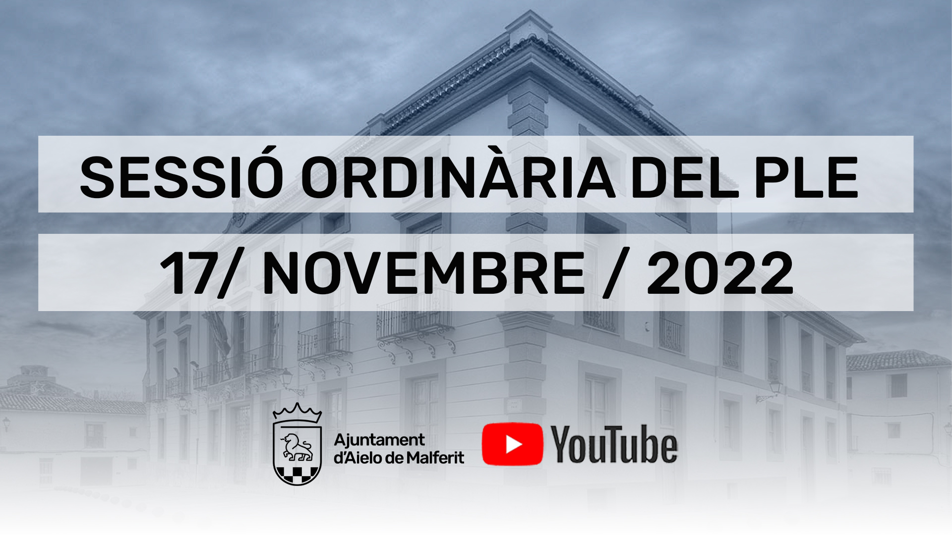 Ací us deixem el vídeo complet del Ple Ordinari celebrat a Aielo de Malferit el passat dijous 17 de novembre de 2022.