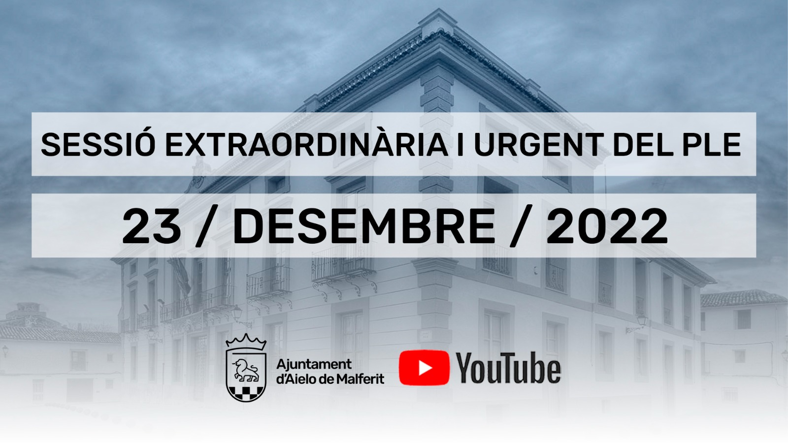 Ací us deixem el vídeo complet del Ple Extraordinari i Urgent celebrat a Aielo de Malferit el passat divendres 23 de desembre de 2022.